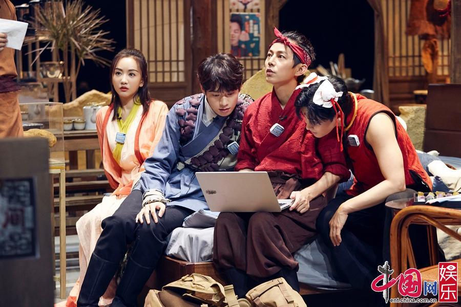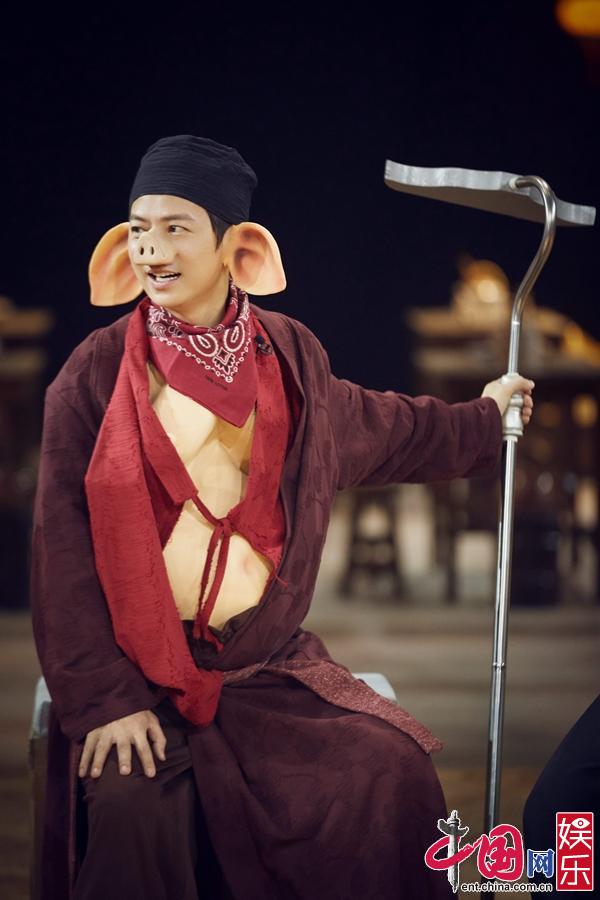 魏大勋饰演的勋悟空和杨蓉饰演的蓉紫霞,除了造型上的还原,出场方式也是别出心裁。两人站在城墙上重现《大话西游》的经典片段——城墙吻,正投入其中,戏精的魏大勋突如其来翻了一记白眼,引发全场爆笑。此外两人更是全程甜蜜互动,花式秀恩爱让其他玩家大呼“够了”!