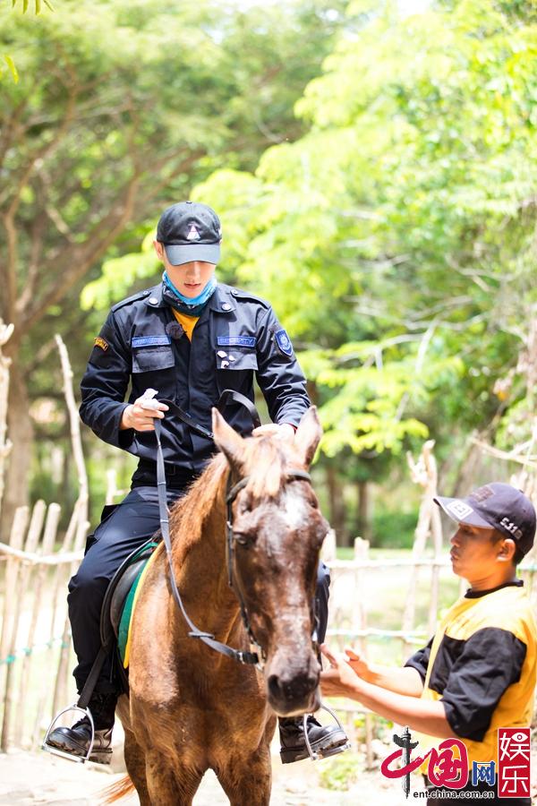 在最新的剧照中,接受安检的黄子韬一脸认真,浅绿外套蓬勃朝气,手持棒球棍走在园区内就是一道靓丽的风景线!换上工作制服的韬韬英气逼人,骑在马上威风凛凛,而夜间巡视也丝毫不懈怠,积极配合园区工作人员的工作。化身为老虎守护者的黄子韬正义凛然,努力保护濒临灭绝的苏门答腊虎。谁知当“守护骑士”遇上真正的“百兽之王”,竟吓得缩起脖子躲在周冬雨和尹正身后?