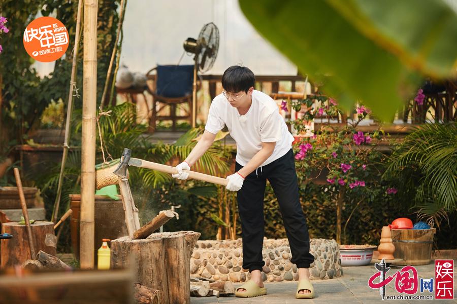 本季众人来到云南西双版纳,在家宅了许久的彭昱畅站在蘑菇屋的后院,脚踩着砍柴用的树墩,周围遍地都摆满了热带特产水果——椰子。彭昱畅像举哑铃似的举起重量不菲的椰子,脸上表情轻松,藏在T恤下健壮的肱二头肌抓人眼球,不免让人猜测他的健身计划是否已有成效?勤劳的彭昱畅又会怎样在这阔别已久的蓝天下带领大家“好好锻炼”?