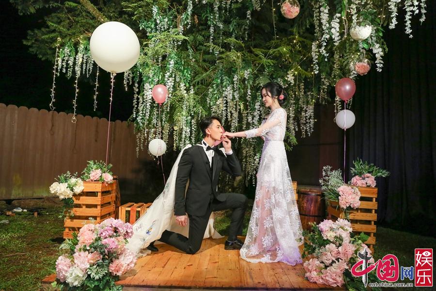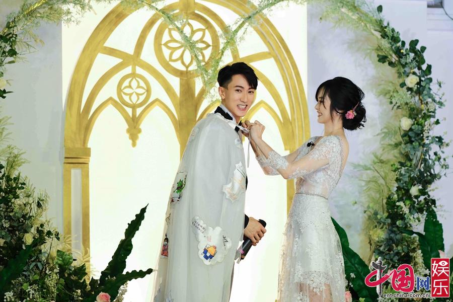 林丽吟将婚纱裙摆卸下为吴尊披上