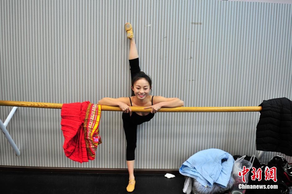 1月23日,女孩在做考前热身。近日,云南艺术学院艺考大幕拉开,吸引万名怀揣艺术梦想的学子前来赶考,为自己的梦想努力奋斗。 中新社记者 刘冉阳 摄