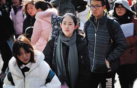 昨天上午,北京电影学院的艺考复试进入第二天。此前公布的初试结果显示,今年共有7631名考生报考了北电表演学院系,2039位考生进入复试,淘汰率达到73%。记者获悉,明星考生关晓彤、张雪迎、赵嘉敏均入围复试。记者了解到,复试每天会考查约500名考生,将持续4天。