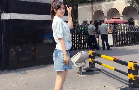 柳岩校门前留影清纯似学生 仅露白腿不露胸(图)
