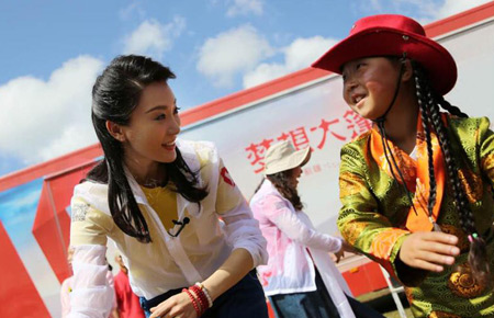 陈数克服高原缺氧做公益 温情起舞获献哈达