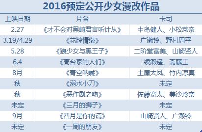 而在今年各种附加竞技元素的校园制服系作品中,最为抢眼的是由广濑铃主演,改编自同名大热漫画的《花牌情缘》,这部漫画在中学、高中学生中人气颇高,不仅有青梅竹马三角恋元素,附加上日本传统的“百人一首”竞技,集戳爆少女心和目标获胜的热血为一体,上下部的超长篇幅也令人期待电影版能将漫画中的萌段子燃比赛一网打尽。此外2016年另外一部值得期待的新作就是“流水的漫改女主,铁打的山崎贤人”与新•漫改女王广濑铃合作的《四月是你的谎》,且不提到9月观众们是否已经在电影院看腻了这两张面孔,单看着卡司配置,名为少年漫实际上比少女漫还戳少女心的剧情,就已经相当值得期待。