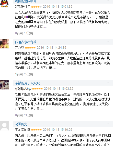 以往,主旋律电影一经制作上映,虽然票房数据总是盛世太平,但熟悉电影的朋友们想必也都知道票房何来,在互联网这样最真实的环境下更是经不起太多考验。而这一回,无论是在诸如豆瓣等互联网各大影视论坛上,还是在影院实地采访中,不少观众都表示,能够在享受一部大片的同时,让大伙儿感受到革命战争年代的共产主义理想与浪漫情怀,以及毛泽东挥斥方遒的运筹帷幄掌兵之道,制片方确实走出了一条让革命精神传承,让国民不忘初心的创新之路。更有不少“冲动”的朋友在留言中写道,在工作之余为了尽早感受影片所带来的热血燃烧的革命战争体验,花费流量看完了这部片子。