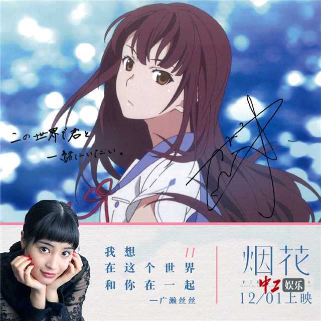 中工娱乐2017年12月1日报道 由岩井俊二原作改编、新房昭之导演的动画电影《烟花》今日上映。上映前,首日票房预售已破千万,并创年度日本引进片首日预售票房纪录。日本当红90后演员、《烟花》主要配音演员菅田将晖和广濑丝丝,以及电影主题曲演唱者DAOKO分别为中国观众送上手写信祝福。岩井俊二继“烟花中国行”后,也再次通过视频的方式表达了对中国观众的感谢。