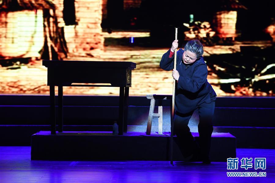 1月15日,在兰州黄河剧院,演员表演新编秦腔现代剧《禹河春》第二场“救难”。