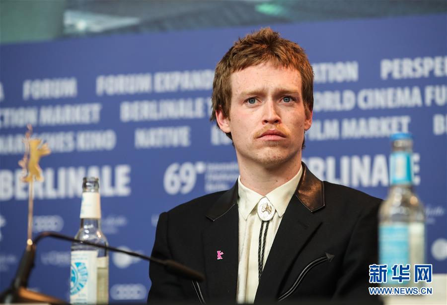 2月7日,在德国首都柏林,影片《陌生人的善意》主演凯莱布·兰德里·琼斯出席新闻发布会。 丹麦导演隆娜·谢尔菲执导的影片《陌生人的善意》成为第69届柏林国际电影节的开幕影片。 新华社记者 单宇琦 摄