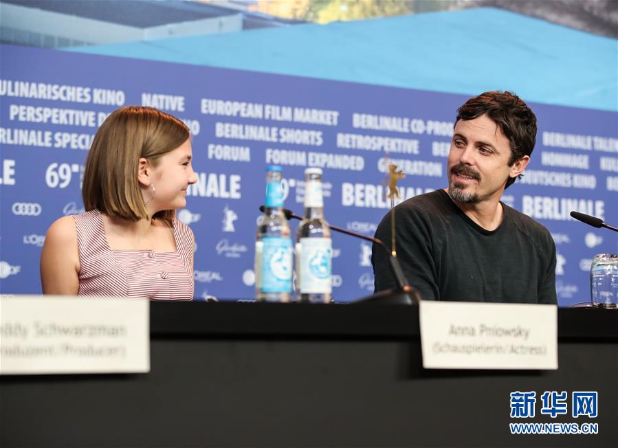 2月8日,在德国首都柏林,影片《我的生命之光》导演、编剧、主演卡西·阿弗莱克(右)和主演安娜·普尼奥夫斯基出席新闻发布会。新华社记者单宇琦摄