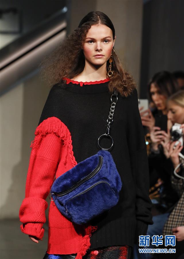 2月15日,在英国伦敦,模特在2019伦敦秋冬时装周上展示Jamie Wei Huang品牌服饰。 新华社记者 韩岩 摄