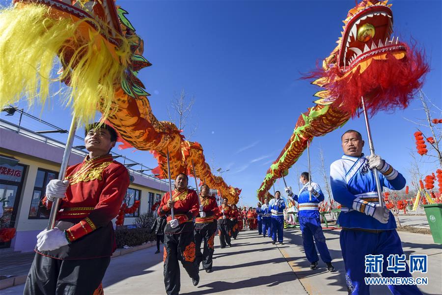 2月17日,舞龙队员在河北省廊坊市广阳区第四届民俗文化艺术节京津冀大庙会上表演。