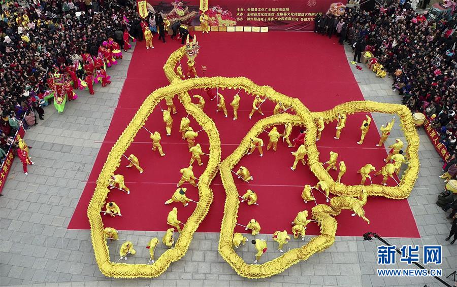 2月17日,安徽滁州市全椒县民间艺人在表演舞龙。