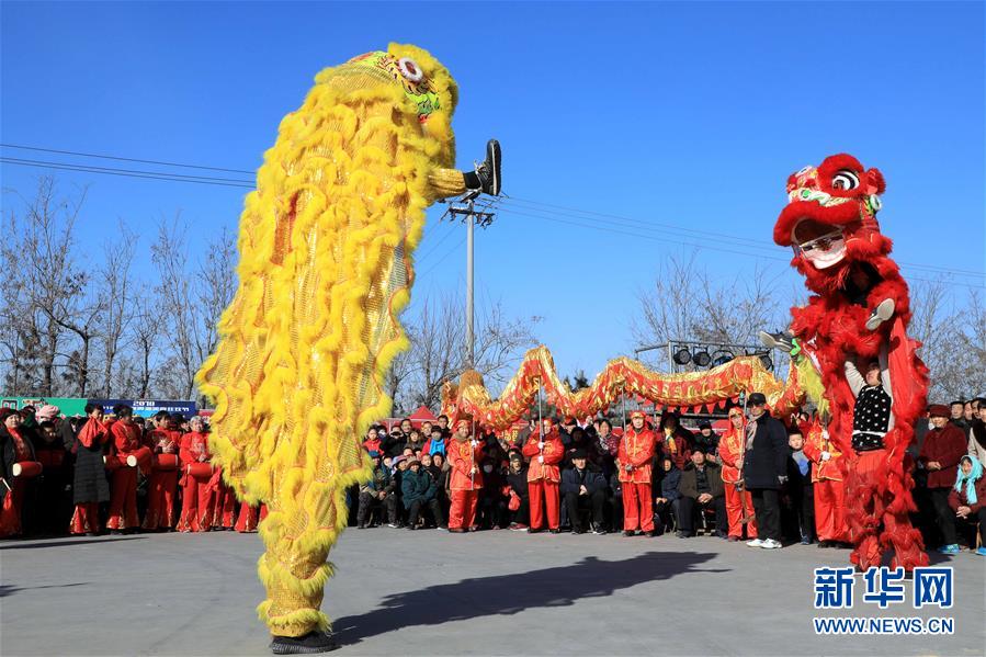 2月17日,民间艺人在山东滨州高新区元宵节民俗文化活动上表演舞狮。