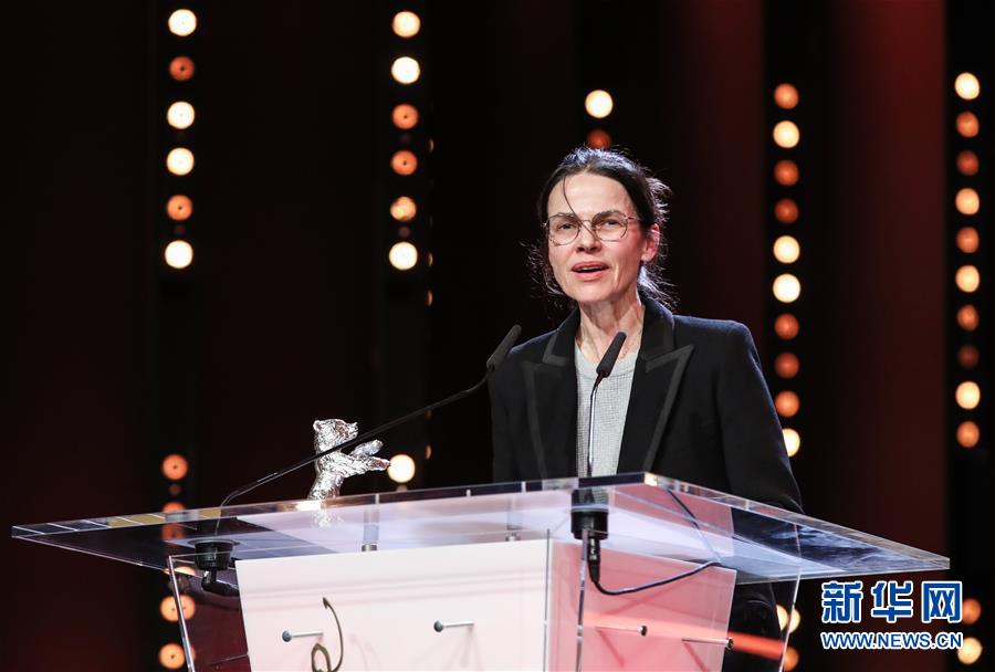 2月16日,在德国首都柏林,凭借影片《我当时在家,但是……》获颁最佳导演银熊奖的安格拉·沙涅莱茨发表获奖感言。 第69届柏林国际电影节主竞赛单元各奖项16日晚在柏林电影宫揭晓,影片《同义词》获得最佳影片金熊奖。 新华社记者单宇琦摄
