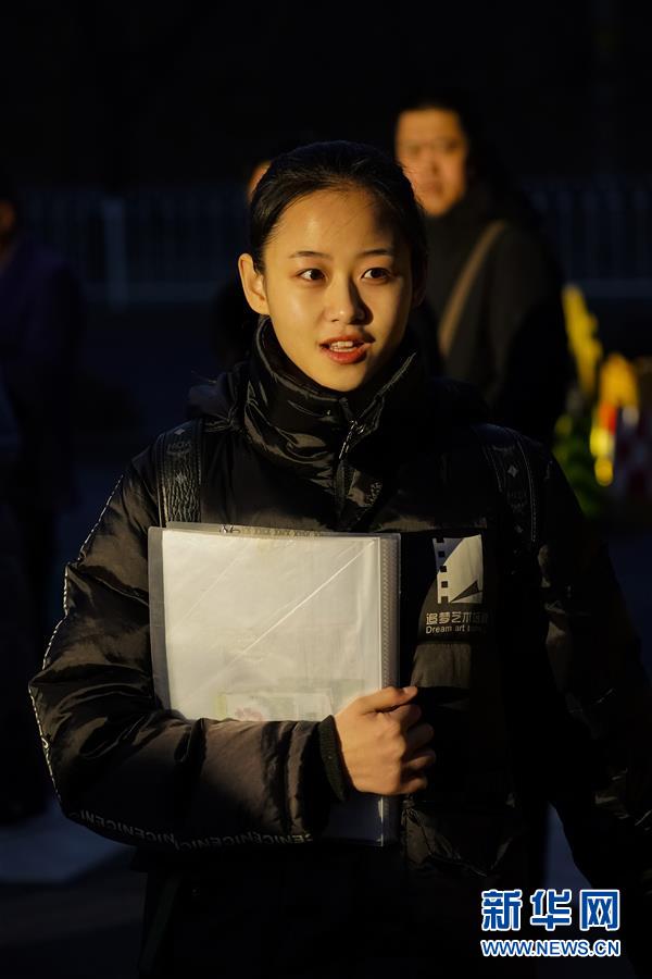 2月16日,考生准备进入北京电影学院参加艺考。 新华社记者沈伯韩摄
