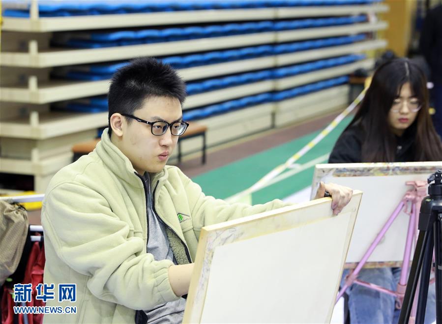 2月16日,报考北京电影学院美术学院的考生在初试现场作画。 新华社发