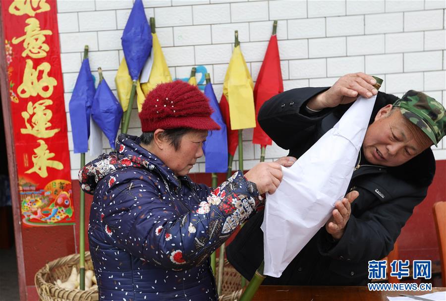 2月18日,在四川省南充市嘉陵区金宝镇和祥社区,65岁的李树会(右)和老伴制作“蛴蟆灯”。 当日是农历正月十四,夜幕降临后,川渝等地数万名群众在四川省南充市嘉陵区金宝镇汇聚,点亮“蛴蟆灯”,敲着锣鼓唱着歌谣,将“蛴蟆”送到几公里外的田边或者河边烧掉,祈福健康平安。星星点点的灯光在乡间小路闪烁移动,场面壮观热烈。 “送蛴蟆”祈福这一习俗源于清朝,历经演变成为川东北地区一个古老而神秘的地方民俗节日。 新华社记者 江宏景 摄