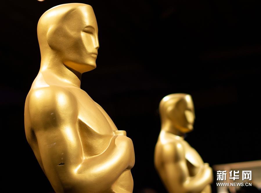 这是2月15日在美国加利福尼亚州好莱坞拍摄的晚宴预览活动现场的“小金人”雕塑。新华社/法新
