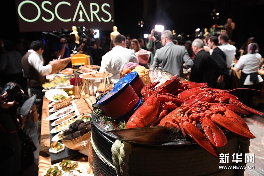 这是2月15日在美国加利福尼亚州好莱坞拍摄的晚宴预览活动现场的美食。新华社/法新