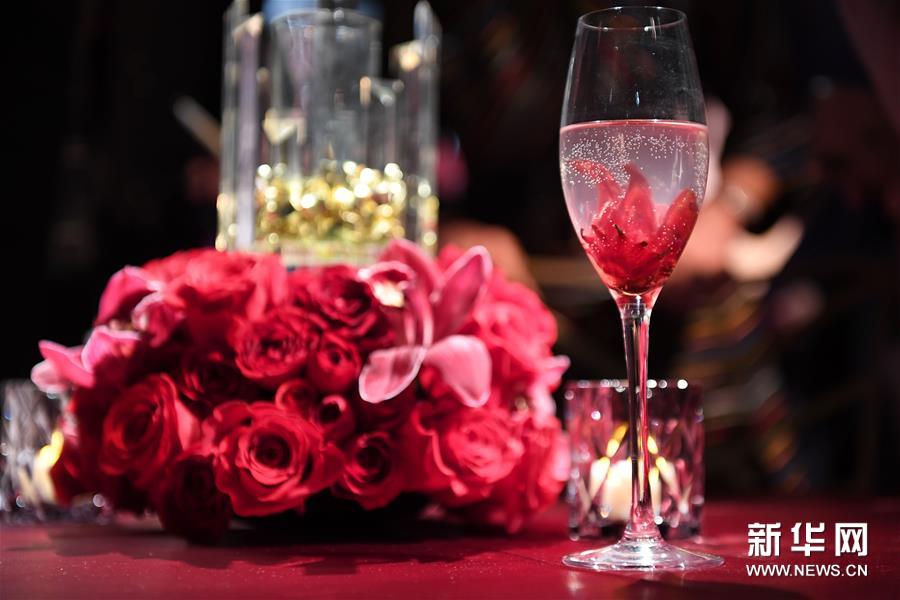 这是2月15日在美国加利福尼亚州好莱坞拍摄的晚宴预览活动现场的饮品。新华社/法新