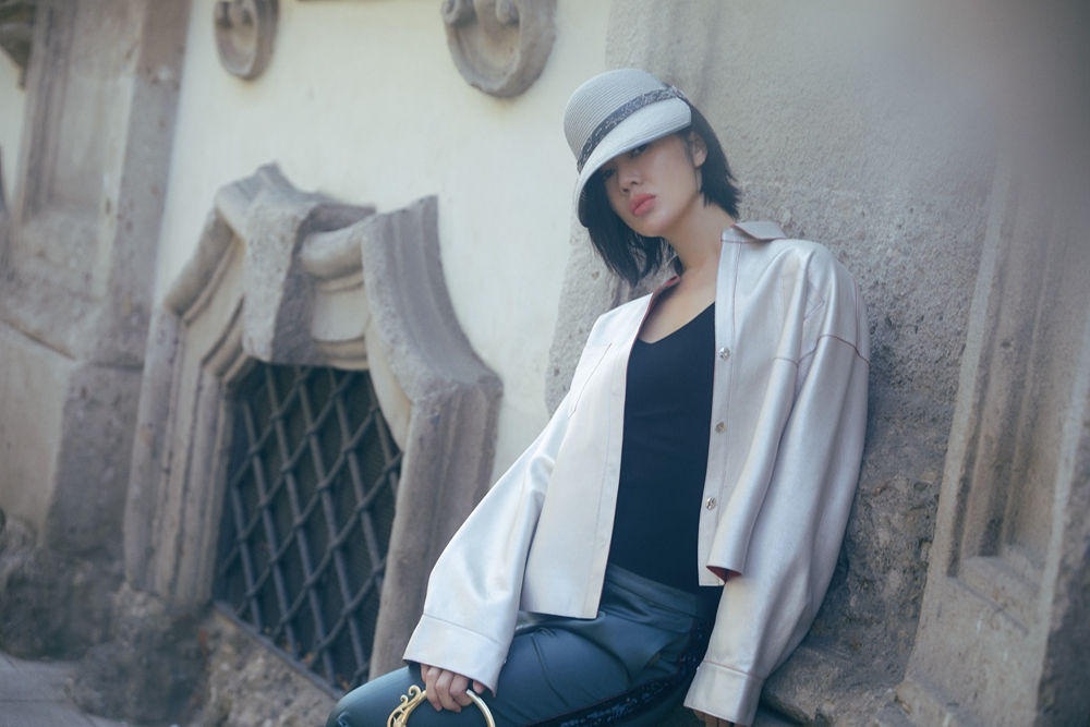 蔡依林以白色V领衬衫与黑色长裙搭配精致珠宝,典雅干练又知性,凸显出不凡的时尚品味,而撞色包边蛇头包在蔡依林的搭配下愈加散发高级质感,与其自信真我的时尚质感相得益彰。