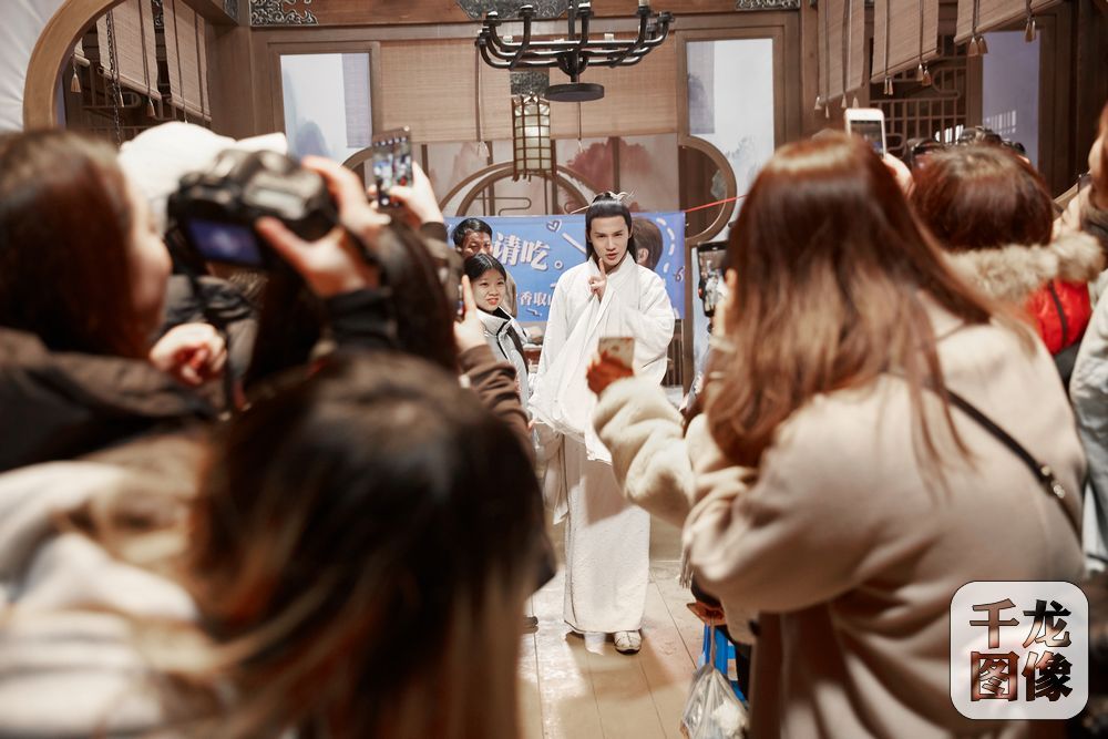 当天,由《三千鸦杀》主演郑业成的60余名影迷自发组织的应援活动来到该剧拍摄现场,为紧张拍摄中的郑业成和剧组工作人员送去现煮热食、热饮、雨披等应援物品,郑业成也在午休间歇与粉丝近距离互动。他以一袭白衣飘飘亮相,加上长发及腰的造型和髻上仙鹤状的发簪,让粉丝忍不住称他此番是“神仙入场”,郑业成则笑称,“感谢造型老师每天帮我化妆,把我画白画‘仙’”。