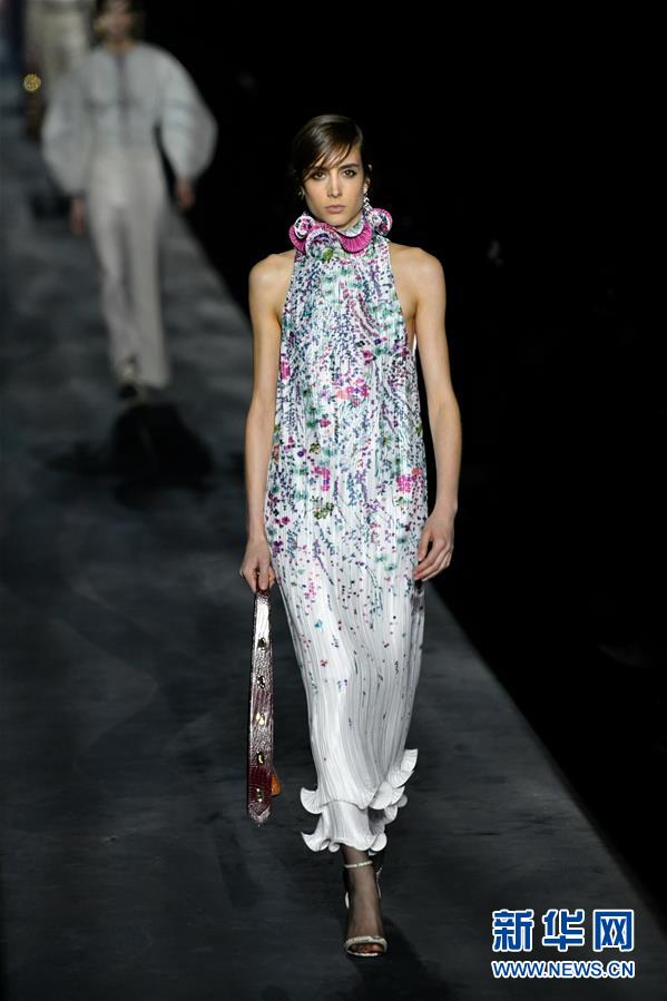 3月3日,在法国巴黎时装周上,模特展示纪梵希品牌2019/20秋冬新款时装。
