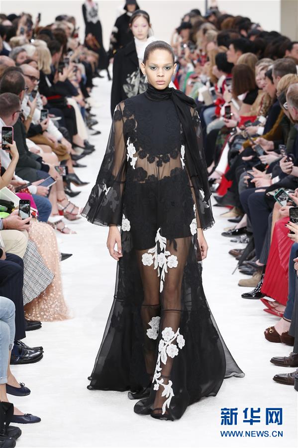 3月3日,在法国巴黎时装周上,模特展示华伦天奴品牌2019/20秋冬新款时装。 新华社发(皮耶罗·比亚西翁 摄)