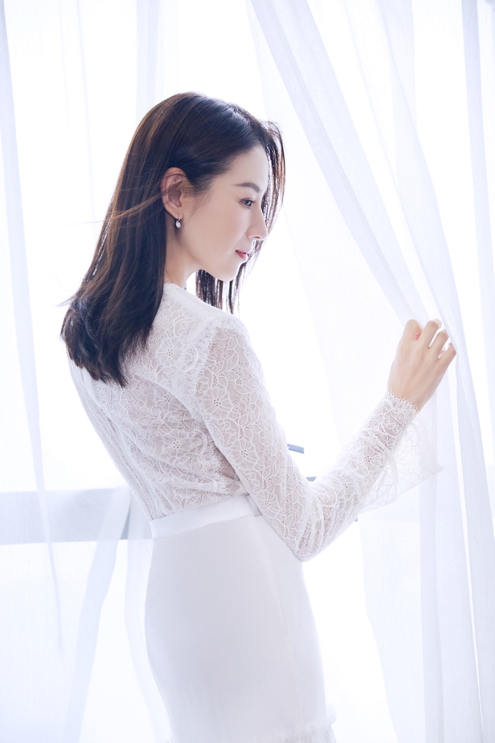 长裙半镂空的设计与纯色花纹简单却不单调,搭配款式简约的珠宝配饰,更衬董洁温柔端庄的娴静气质,属于东方女性的独特美感由内而外散发,令人过目难忘。