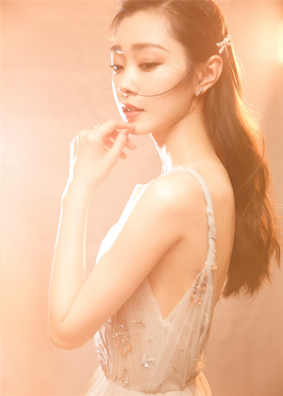 长裙半镂空的设计与纯色花纹简单却不单调,搭配款式简约的珠宝配饰,更衬董洁温柔端庄的娴静气质,属于东方女性的独特美感由内而外散发,令人过目难忘。