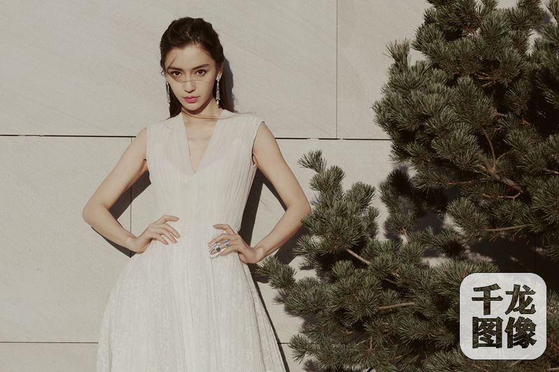 3月19日,Angelababy出席某品牌在上海举办的发布会活动,一身纯白色V领无袖礼裙衬出娇美,站在户外的造型美图更展现清丽气质。