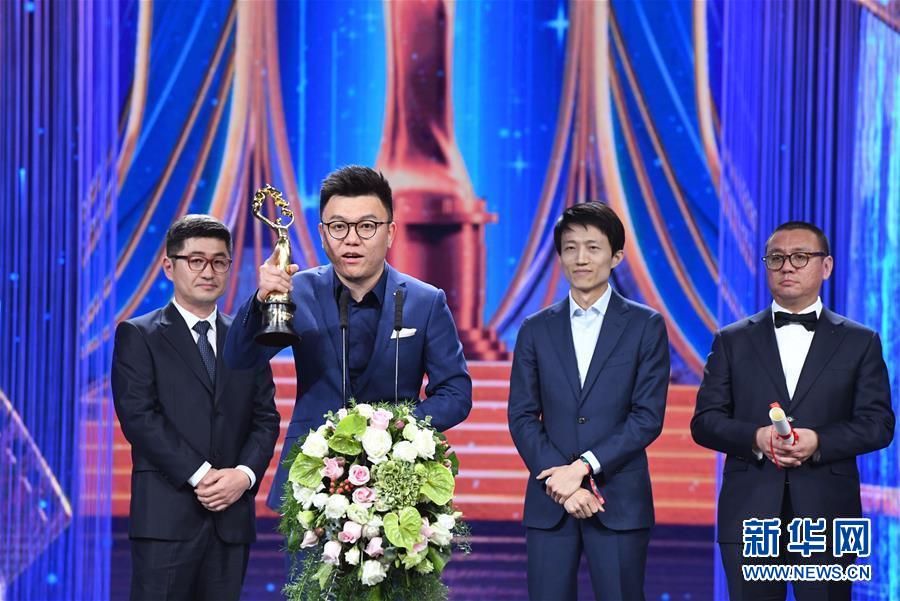 4月20日,影片《流浪地球》获得“天坛奖最佳视觉效果奖”,这是影片《流浪地球》主创人员在颁奖典礼上领奖并发表获奖感言。 当日,第九届北京国际电影节闭幕式暨颁奖典礼在北京怀柔国家中影数字制作基地举行。 新华社记者 陈晔华 摄