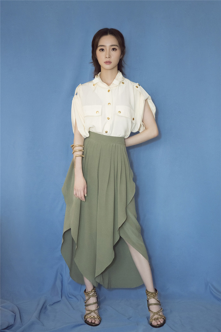 当天胡冰卿身穿米白色休闲衬衫,搭配淡绿色不规则下摆阔腿裤,大气剪裁缀饰精致细节简约时尚,刚柔并济的线条之间流露优雅盈动之美,明媚春夏色调凸显青年人的蓬勃朝气。