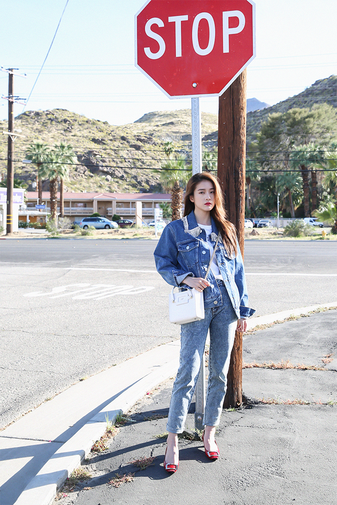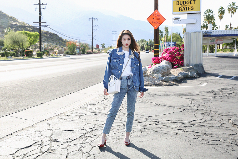 张雪迎一组美国洛杉矶街拍释出,演绎最in率性女孩风姿。长发随性披散,一身酷帅牛仔造型内搭简约白T,搭配红色高跟鞋更添时尚感,绽放酷girl青春魅力。
