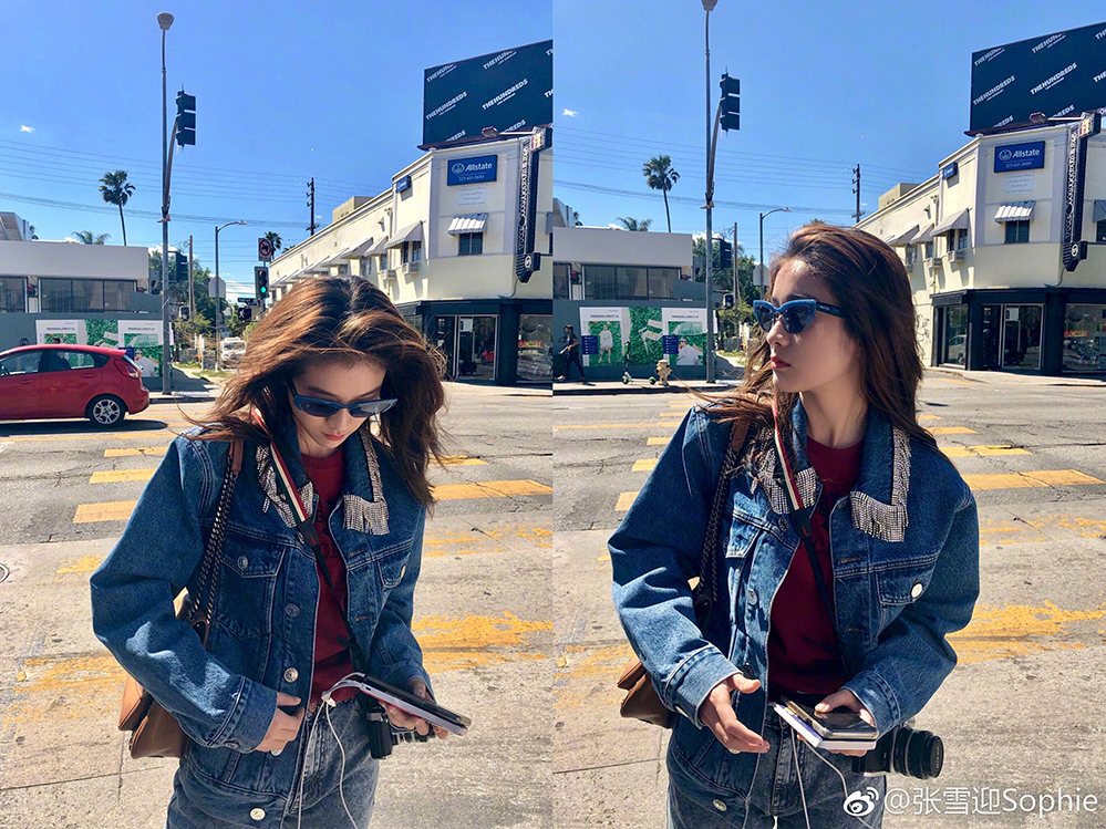 张雪迎一组美国洛杉矶街拍释出,演绎最in率性女孩风姿。长发随性披散,一身酷帅牛仔造型内搭简约白T,搭配红色高跟鞋更添时尚感,绽放酷girl青春魅力。