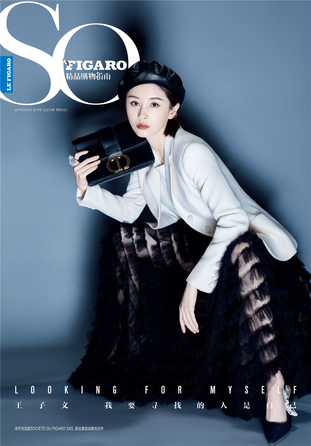 杂志内页王子文分别以黑色皮革外套、黑白拼接不规则吊带长裙、黑白拼接羊毛丝质长裙、白色印花连身裙和黑色刺绣连衣裙五套装扮亮相。黑白系的王子文时而半掩面,时而微敛颚,时而倚一隅,双眸聚焦似迷离似笃定。或端庄成熟或娴雅知性或复古传统,每套服装的风格大相径庭,王子文凭借自身的鬼马灵动多元呈现个性气度,完美解锁多面主题。