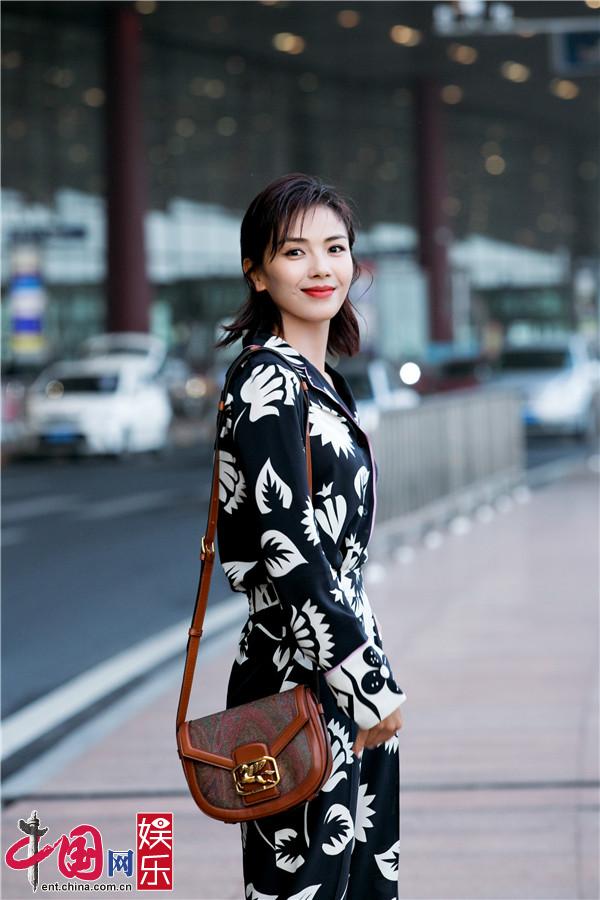 刘涛启程前往戛纳国际电影节 黑白印花睡衣惬意洒脱