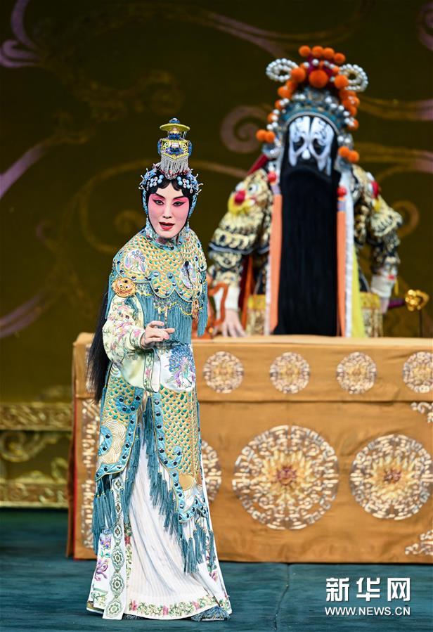 5月25日,饰演虞姬的张火丁(前)在京剧《霸王别姬》中表演。新华社记者 陈晔华 摄