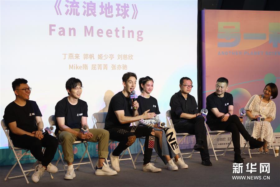 5月26日,电影《流浪地球》主创团队在“另一颗星球”科幻大会上与观众见面。新华社记者 孟鼎博 摄