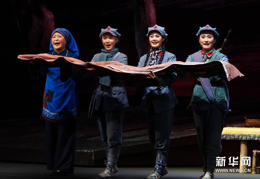 5月27日,演员在上海美琪大戏院表演现代京剧《红军故事》 。新华社记者 任珑 摄新华社上海5月27日电(记者许晓青、吴霞)三个发生在红军长征时期的传奇故事,由京剧演员扮演的“老红军”和“红军孙辈”深情讲述,串起国家京剧院现代京剧力作《红军故事》。