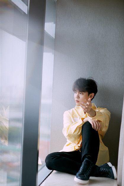镜头中,尤长靖身穿黄白衬衫,鲜艳明亮,他带着微笑的嘴角和眼眸,如夏日微风一般清爽。尤长靖时而注视镜头,从一树青翠中似清风拂面,时而侧对一丛绿叶,眼神无限缱绻。或倚靠飘窗一角,凝视远处风景,静谧中尽显少年清新。