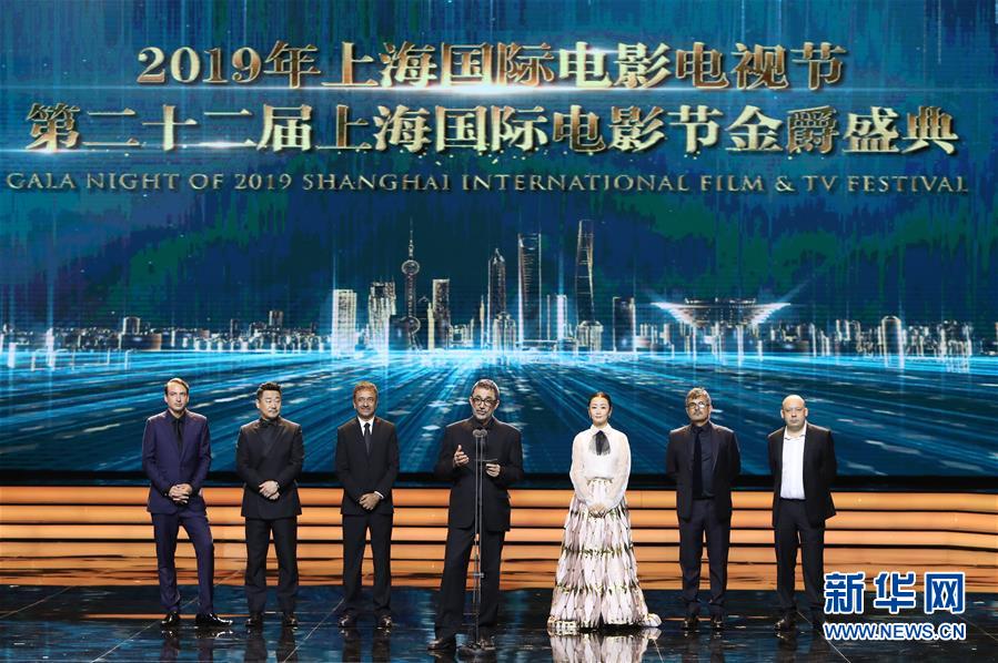6月15日,第22届上海国际电影节主竞赛单元评委会主席土耳其导演努里·比格·锡兰(中)代表评委会成员在开幕式上致辞。 当日,第22届上海国际电影节在上海大剧院开幕。 新华社记者 方喆 摄