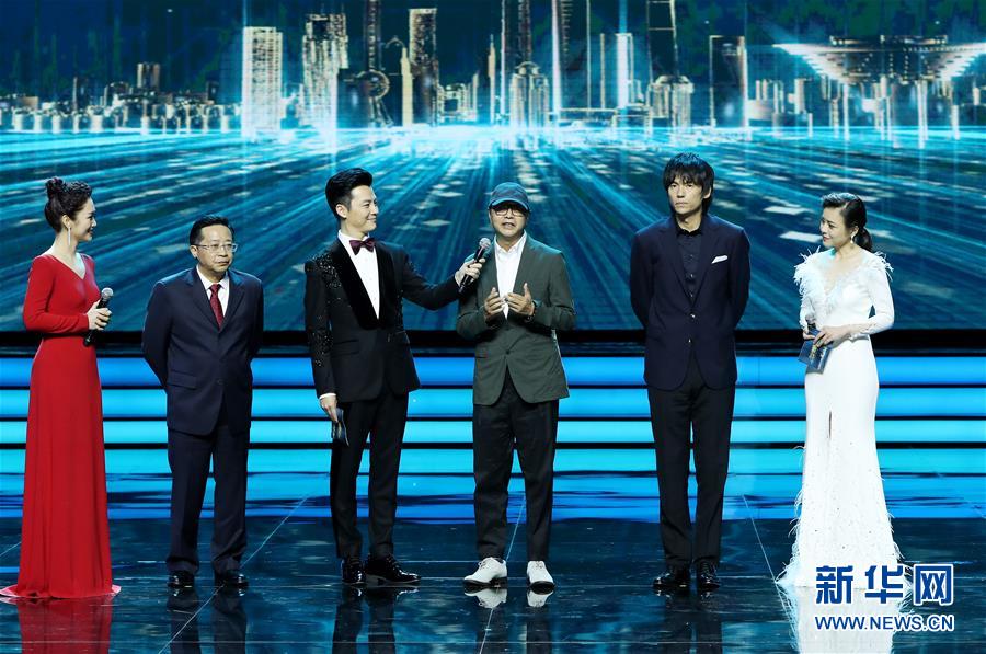 6月15日,本届电影节开幕影片《穿越时空的呼唤》剧组成员代表在开幕式上亮相。 当日,第22届上海国际电影节在上海大剧院开幕。 新华社记者 方喆 摄