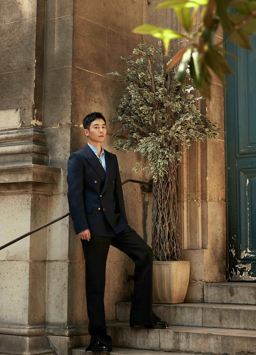 近日,朱亚文现身巴黎街头,以一件深蓝色的双排扣经典西装出镜,搭配上浅色的衬衫和阔腿裤,演绎80年代复古英伦风。在明媚的阳光下,朱亚文的正装造型质感十足,挺拔又温润,儒雅气质展露无遗。