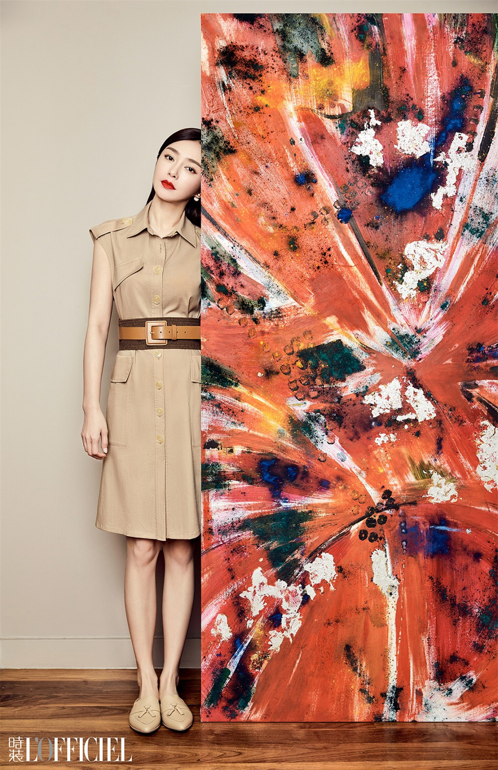 其中,秦岚或身着深蓝色波点缎面长袖长裙,长裙腰间上搭配金色环装饰,气质婉约优雅。或身穿黑色露背长裙,露出蝴蝶骨和笔直大长腿,展现无限魅力,女人味十足。或身着深蓝色荷叶边衬衫,把简约和优雅两种风格展现的淋漓尽致。面对镜头时,秦岚的眼神笃定而自信,气质优雅从容,令人动容。