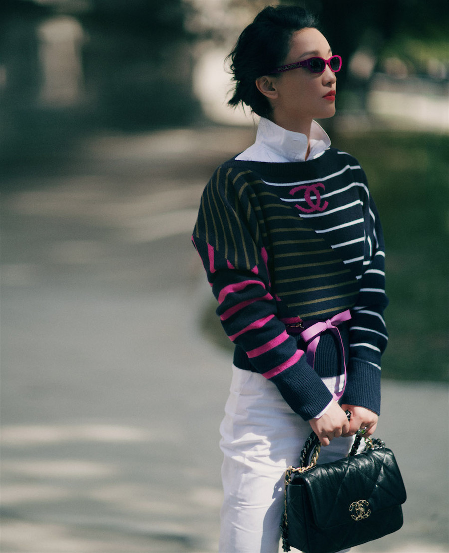 近日,周迅亮相巴黎时尚活动。身着条纹针织衫的迅哥儿,搭配连体裤和墨镜,简单利落又知性,腰间的蝴蝶结腰带则俏皮十足。