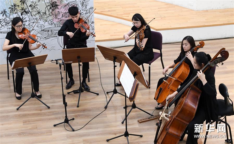 7月8日,演员在新闻发布会上演奏。新华社记者 朱祥 摄