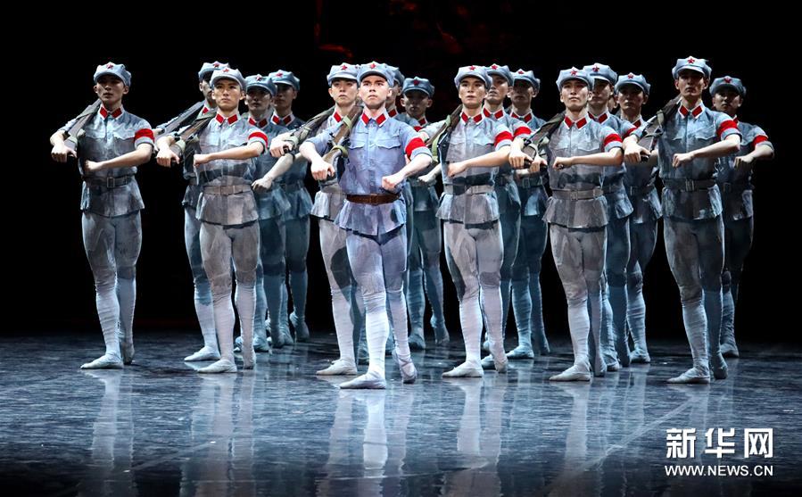 7月7日,在河北省艺术中心,来自上海芭蕾舞团的演员在芭蕾舞剧《闪闪的红星》中表演。剧目。 新华社发(梁子栋摄)