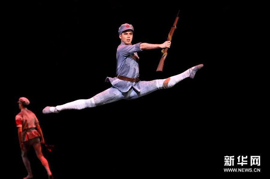 7月7日,在河北省艺术中心,来自上海芭蕾舞团的演员在芭蕾舞剧《闪闪的红星》中表演。剧目。 新华社发(梁子栋摄)
